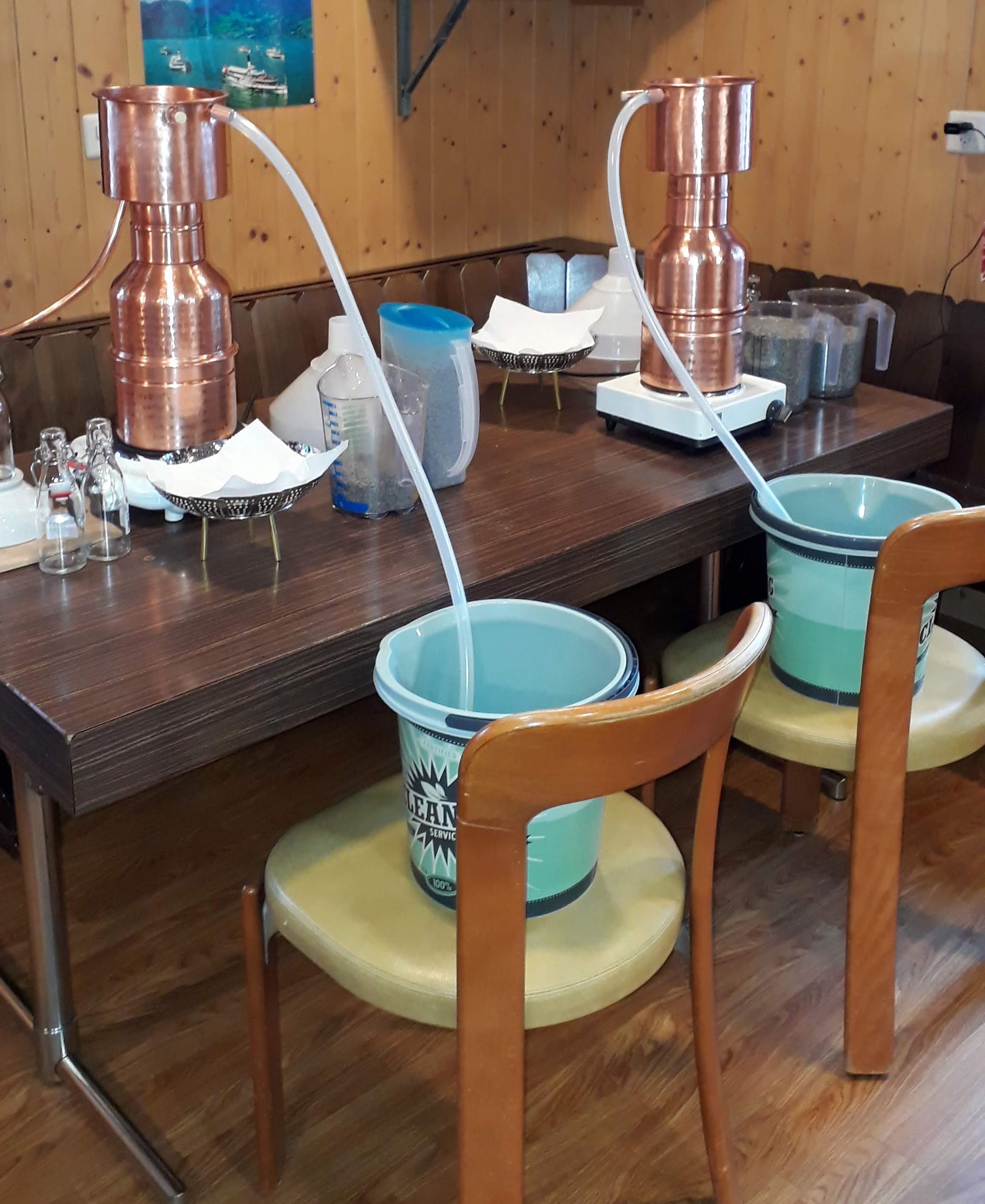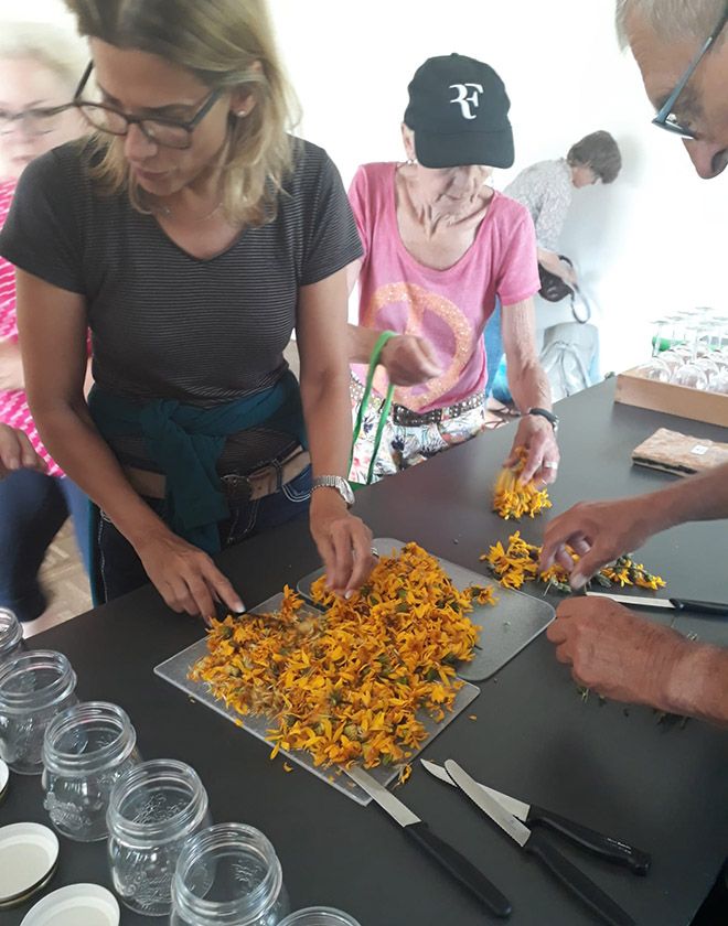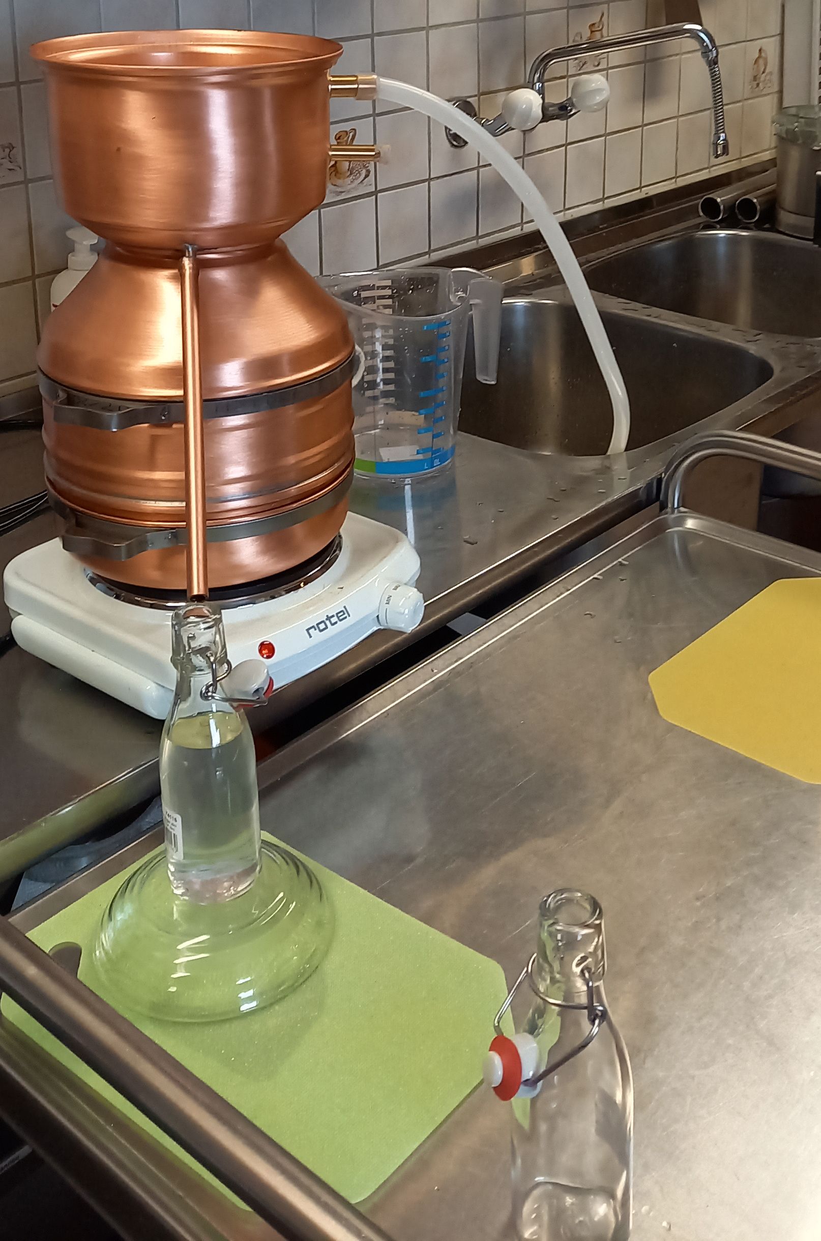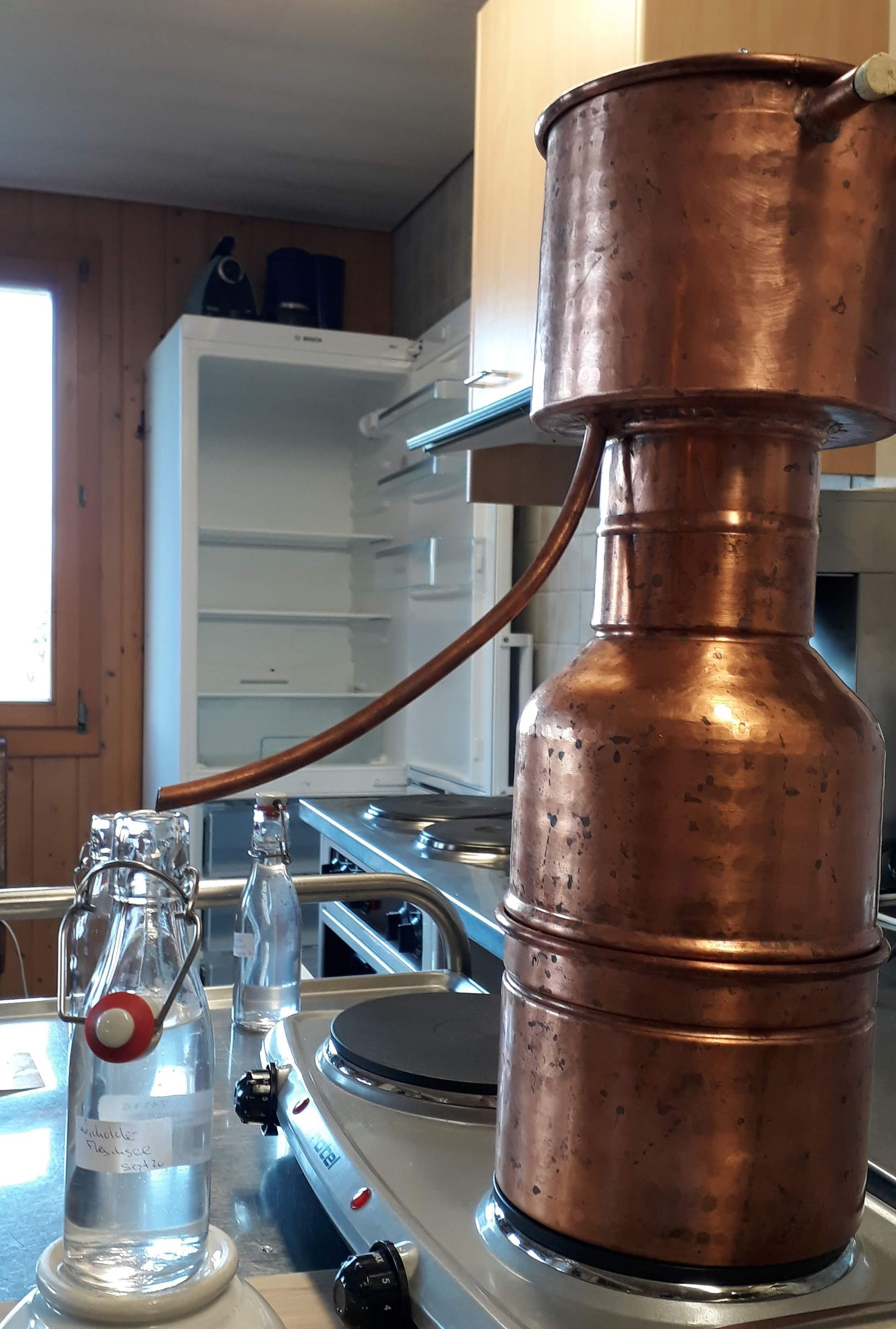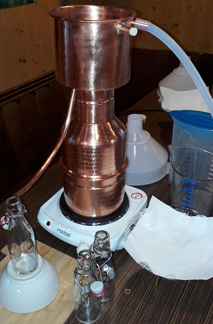 . . . und verarbeiten sie zu Tinkturen und Einreibemitteln. Oder wir entziehen ihnen in der Destille ihre Essenzen. Wacholder, Fichte, Tanne, Arnika, Johanniskraut, Huflattich, Schlüsselblume und Co. warten geduldig auf euch.